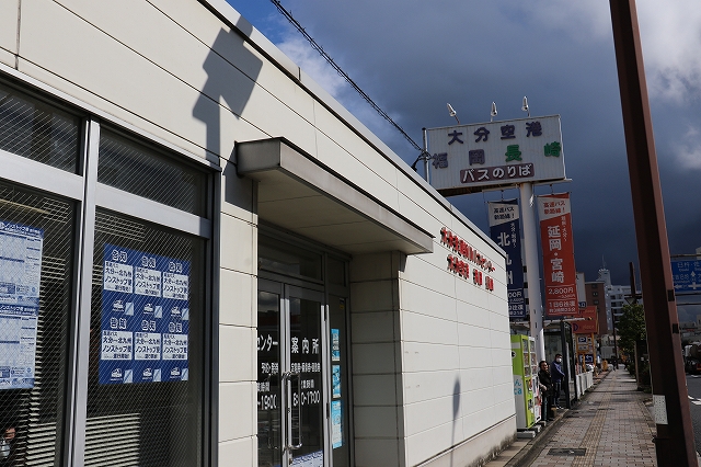 大分駅から新川バス停まで路線バスで移動。待合室と窓口があるバス停で、広島線廃止以降大分空港・福岡・長崎・小倉・延岡宮崎・神戸大阪京都と高速バスが発車してます。