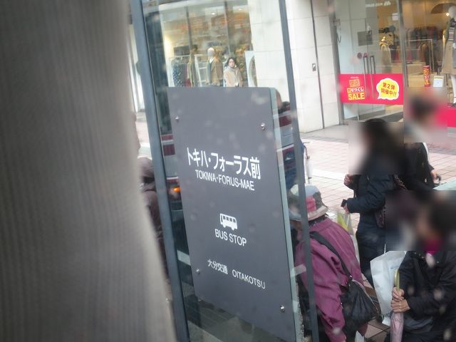トキハ前も通過。反対側のフォーラス前で乗車を行います。