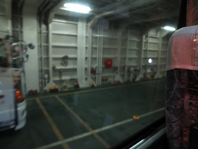 貸切バスでフェリー乗船は何度かあるものの路線バスでは初体験。到着の案内が流れたら再度バスに戻るようにとの事。