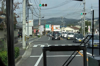 大きな交差点を過ぎ、青江バス停近くを走行。