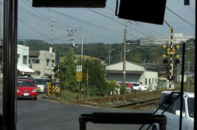 JR伯備線の踏切を過ぎて、次の酒津口で1名乗車。