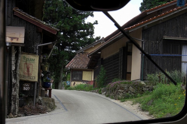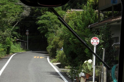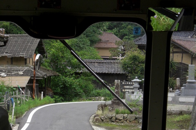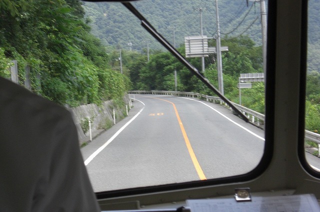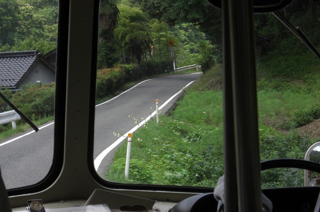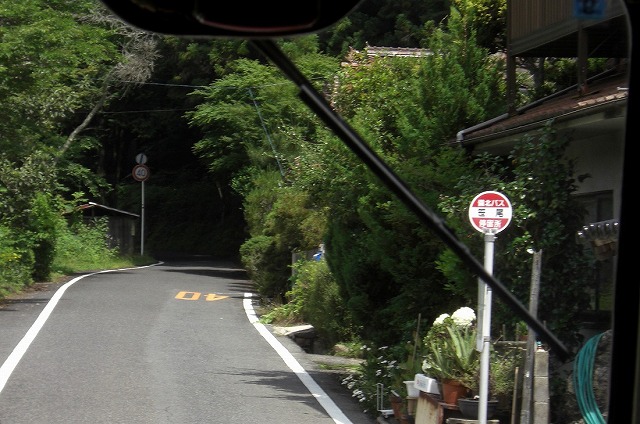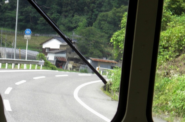 吹屋方面の標識が見えるとバスは180号線を離れて山道を進みます。ここからちょっとゆっくりと走ります。