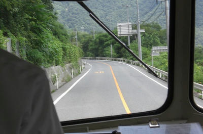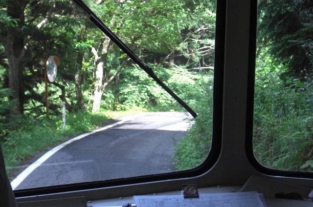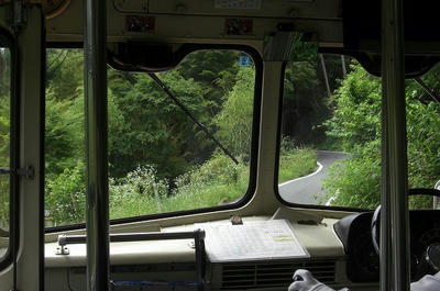 田舎道(失礼)を走るバス。自然がいっぱいですね。