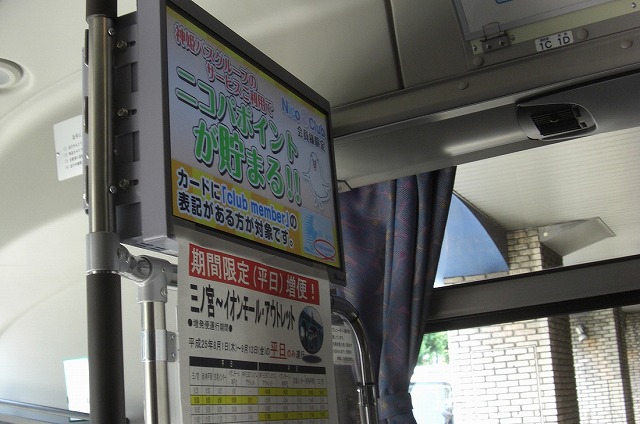 運転席後部には広告やニュースが流れる液晶パネルが設置していました。