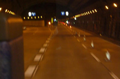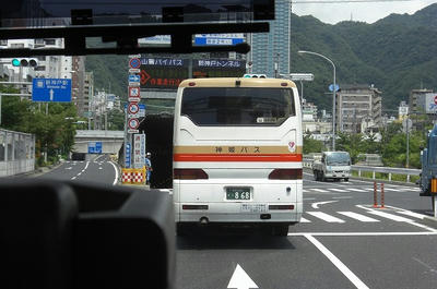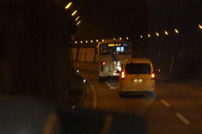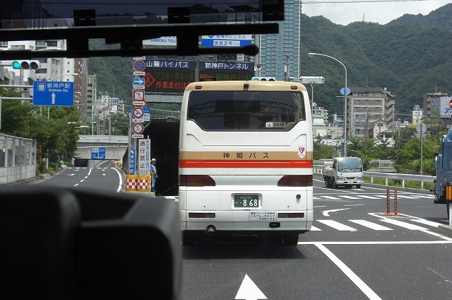新神戸トンネルを走るバス。途中みなと観光バスのブルーリボンⅡも新神戸トンネルを走行していました。