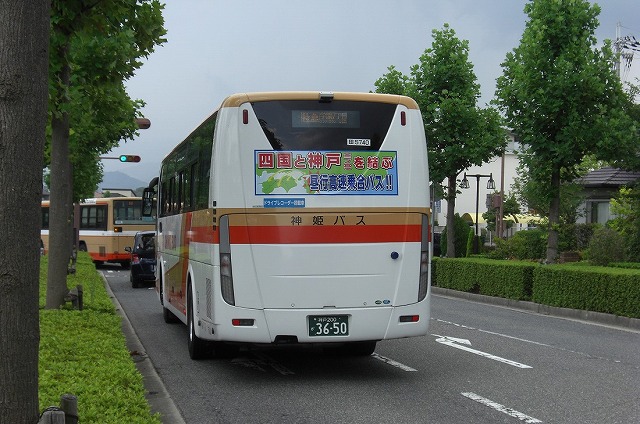 8名お客さんを乗せて出発。 写真のバスはウエスト神姫の三ノ宮~山崎線で使用してました。増便も何度か行われてるので利用者も多いんでしょうね?