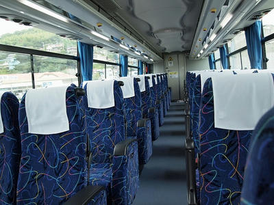 車内は4列シートと補助席が並んでおり、後部にはトイレと化粧室の設置があるグレードの高い車両となってます。