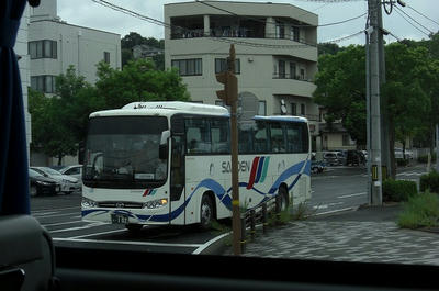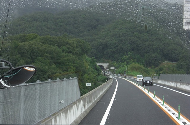 尾道自動車道を走るバス。対面通行と写真はありませんが長~いトンネルが続きます。