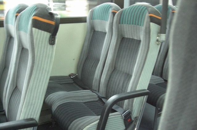 車内はこのような特注のはいバックシートが並んでおり、高速道路を走行するためシートベルトの設置もあります。って事で広島バスセンターからは7名乗車がありました。