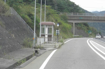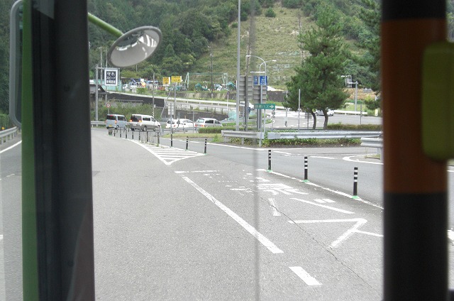 料金所を抜けてバス停に向かいます。