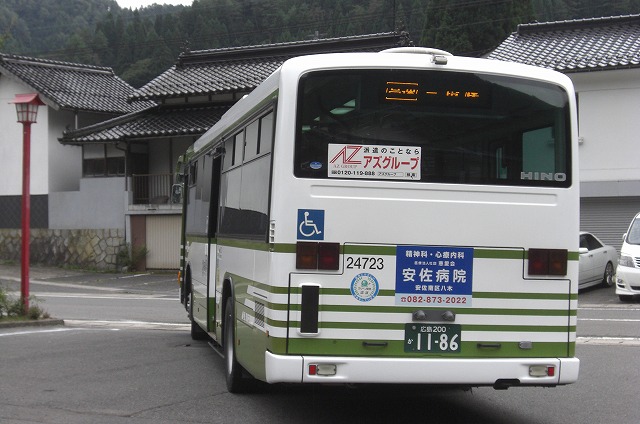 三段峡を16:30に出発した一般道経由の広島BC行きのブルーリボン2とスライド。こちらも折返し高速経由の三段峡線で使用されるっぽいです。
