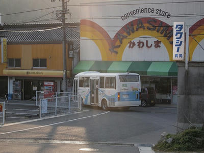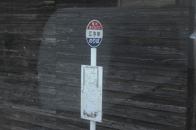 江与味バス停の近くはこのような感じで、買い物客が降りていきました。奥側のT字は左折してました。