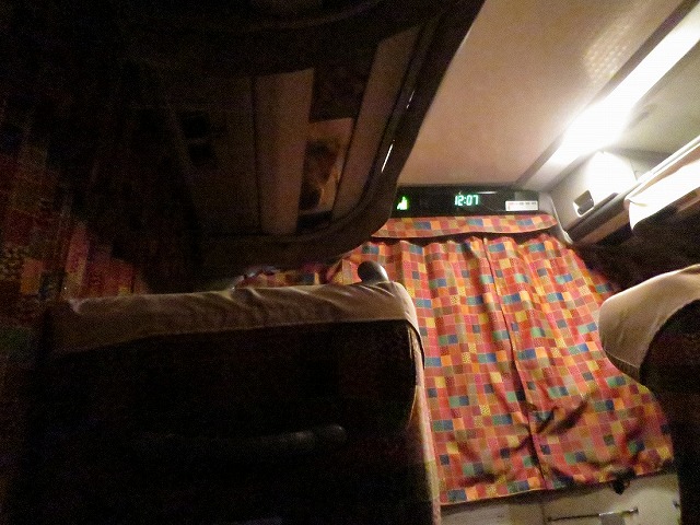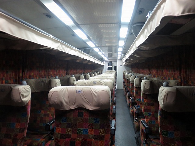 (14年3月乗車の)深夜便の車内はこのような感じで、3列シートが並んでおります。