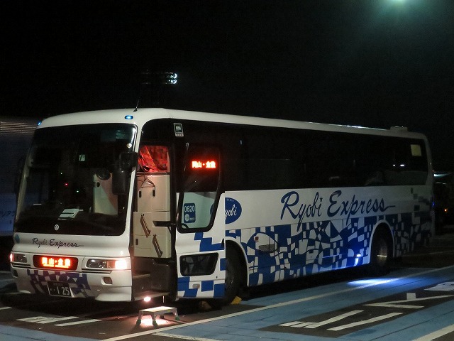 まわりはトラックだらけでバスは筆者が乗ってるリョービエクスプレスのみでした。
