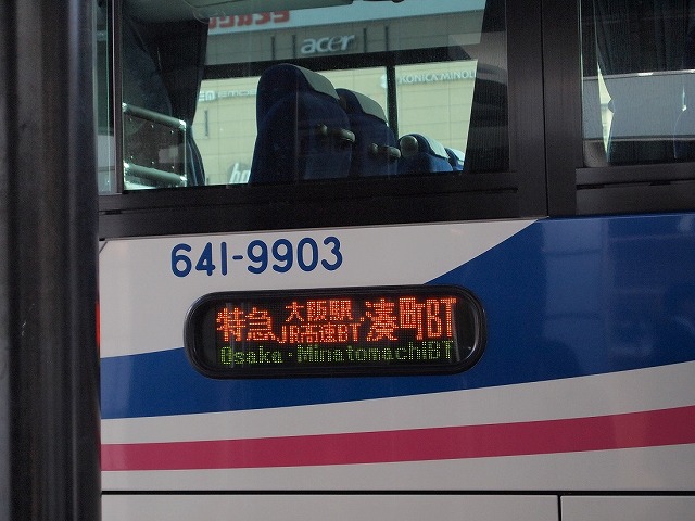 21:20・・・3分遅れで終点の湊町バスターミナル(OCAT)に到着。