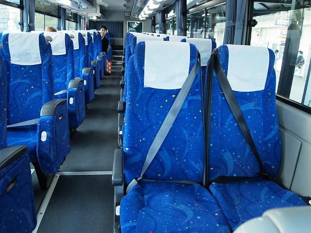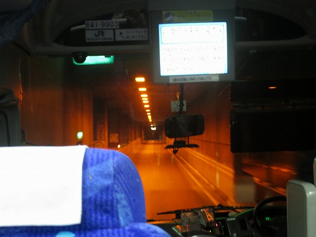 このバス夜行バスでも使用できるように前方には遮光カーテン、床下には乗務員用仮眠室の設置もあります。