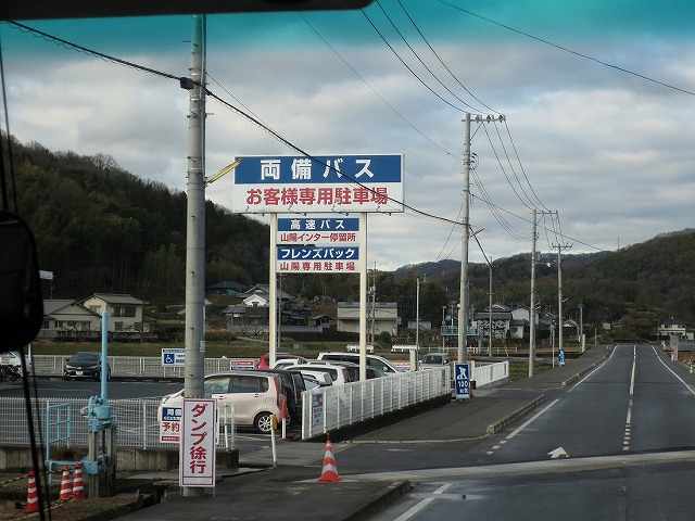 山陽インターチェンジで一旦降りて、山陽インターバス停へと向かいます。ここからは数名乗車がありました。