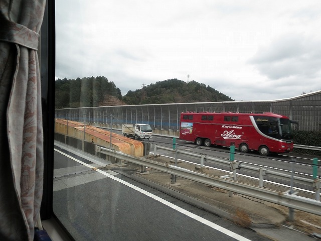京都深草バス停付近を走行。バス停には福井行きの阪急バス、右奥は仙台ナンバーが付いてた東日本急行のセレガが走ってました。