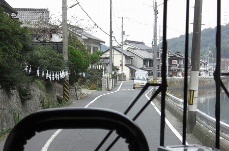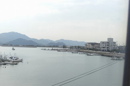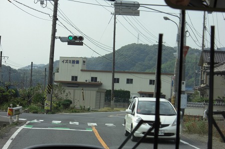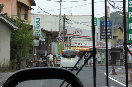 すでにバスは待機しており、笠岡駅からは6名乗車がありました。西ノ浜の近くを走るバス。近くに井笠鉄道の本社や待機所が見えます。