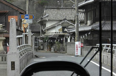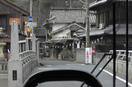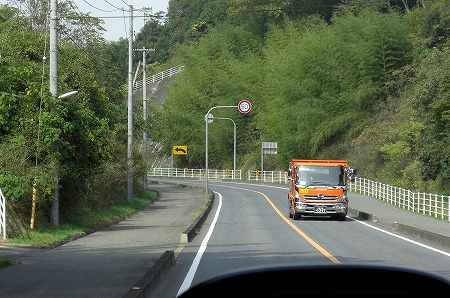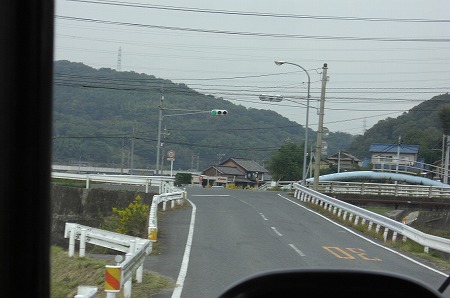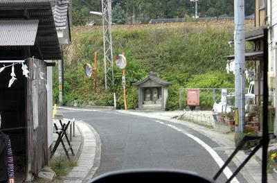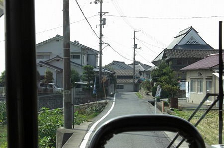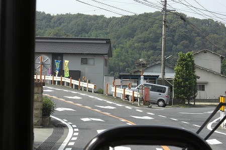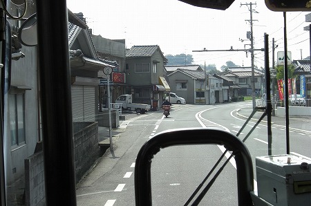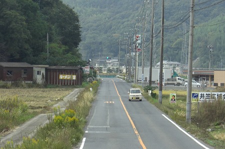 新幹線の高架近くの有田バス停を通過し↓旧道って言うかここも狭隘区間を走ります。バス停でいうと陶山局前バス停付近を走行中です。狭隘区間を進んだ後は広い道へと合流し、県道3号線を北上します。