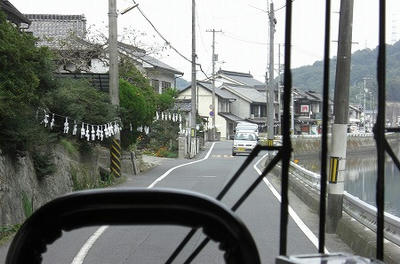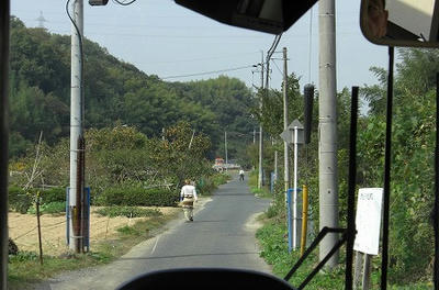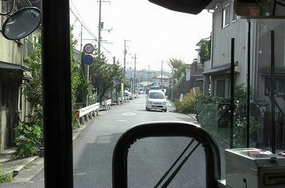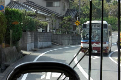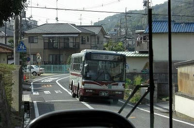 狭隘区間を走るバス。