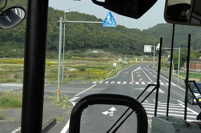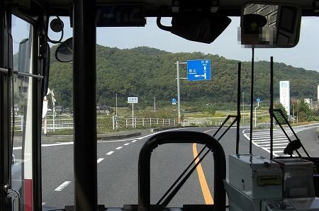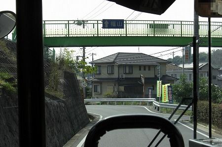 途中日野・レンジャープロやプロフィアのダンプ軍団とスライド。レンジャープロのダンプは3軸仕様でした。篠坂バス停付近を通過。丁度岡山と広島の県境となっています。篠坂バス停を過ぎたらT字路が見えるので左折し坪生方面へ。坪生峠バス停付近で2台井笠鉄道の車両とスライドします。コンビニが見えればバスは左折し、坪生の住宅街を走行します。