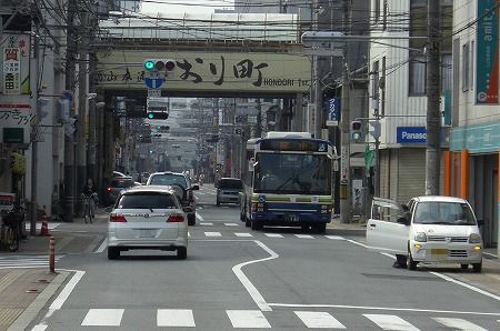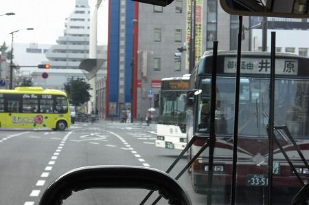 三吉町で1名乗せて、三吉町南1丁目交差点を右折。中国バスのエルガLTとスライド。福山駅に近いってこともあり、交通量も多いです。以前は天満屋の横で下車が可能だったようですが、現在は綺麗なバスターミナルが出来ているので↓右折しバスターミナルへと入り、終点の福山駅に到着です。