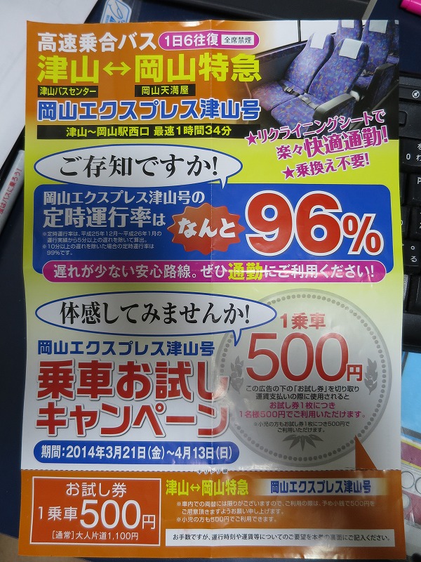 津山広域バスセンターを16:15に13名乗せて発車。キャンペーン効果でしょうね!?