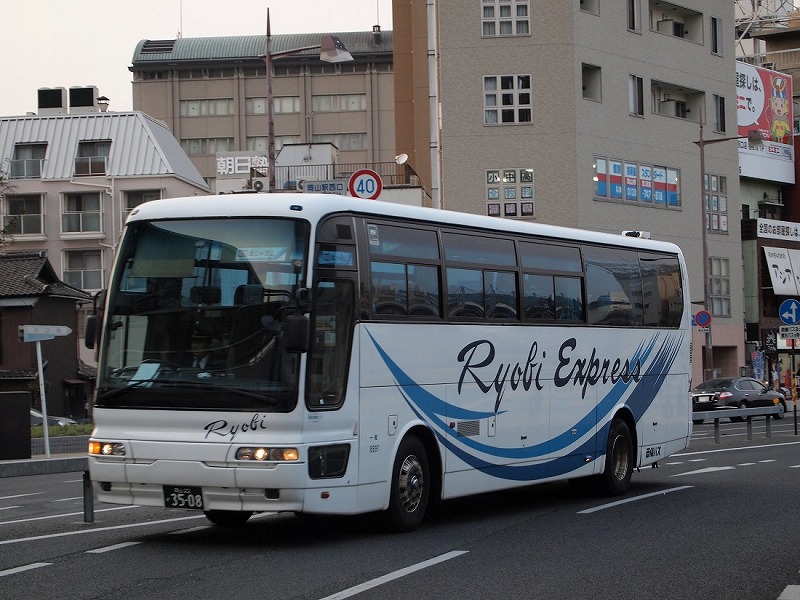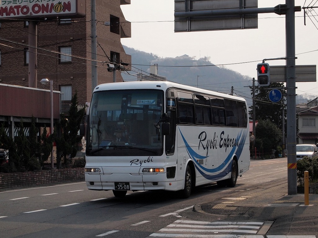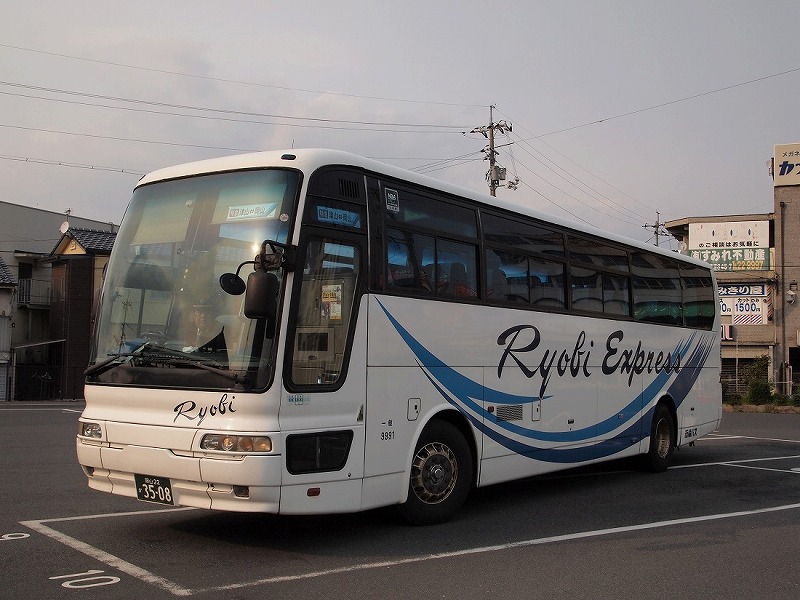 やってきたバスは両備バスのエアロクイーンⅠ(9991)です。貸切転用な1台で、同路線で使用される前は岡山からの県外高速バスでも使用してました。