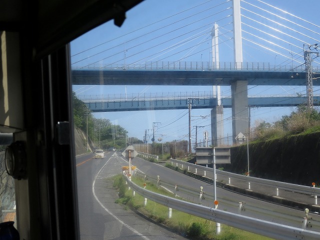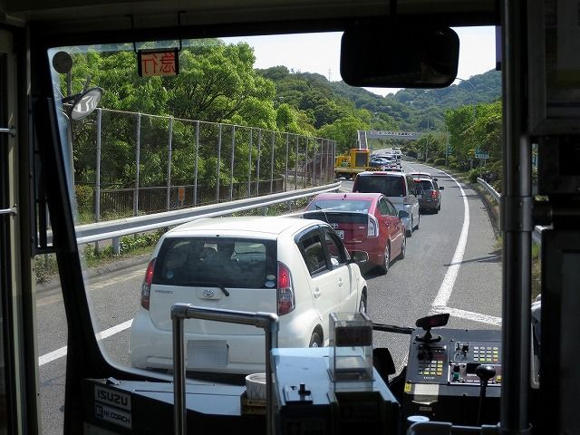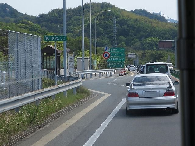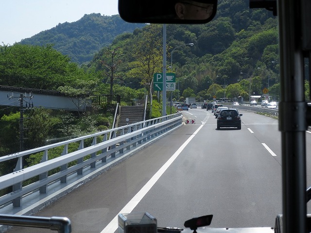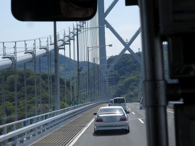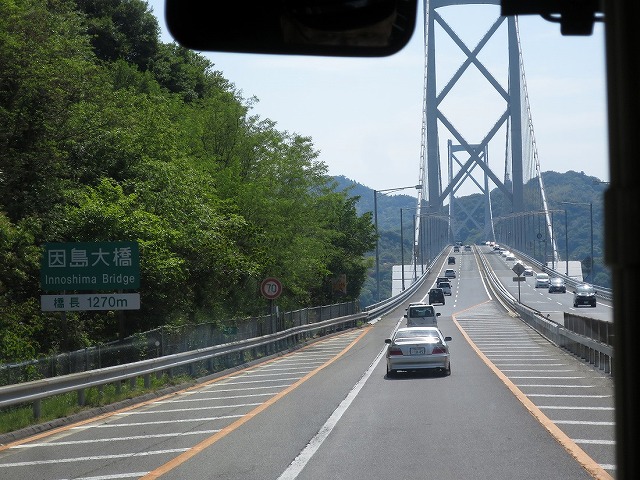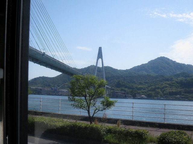 15名ほど乗せて尾道駅を出発。GWってこともあり車も観光客も多い多い。国道2号線を東へ進みます。