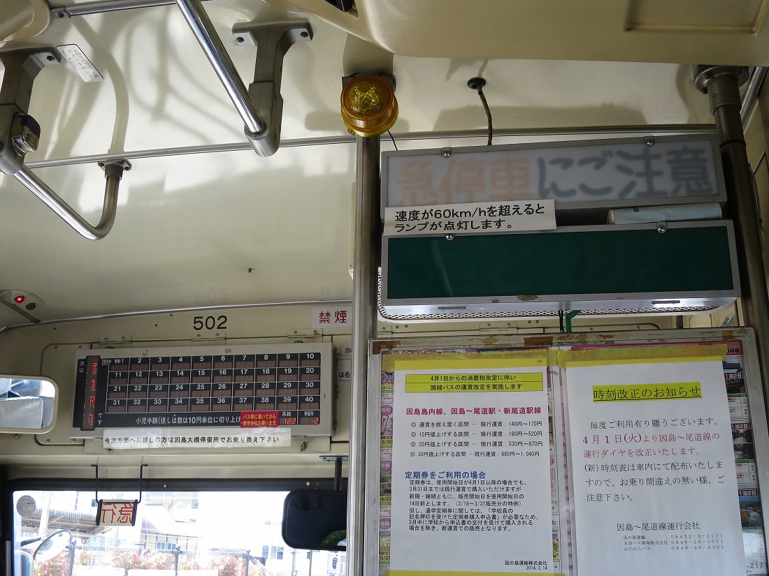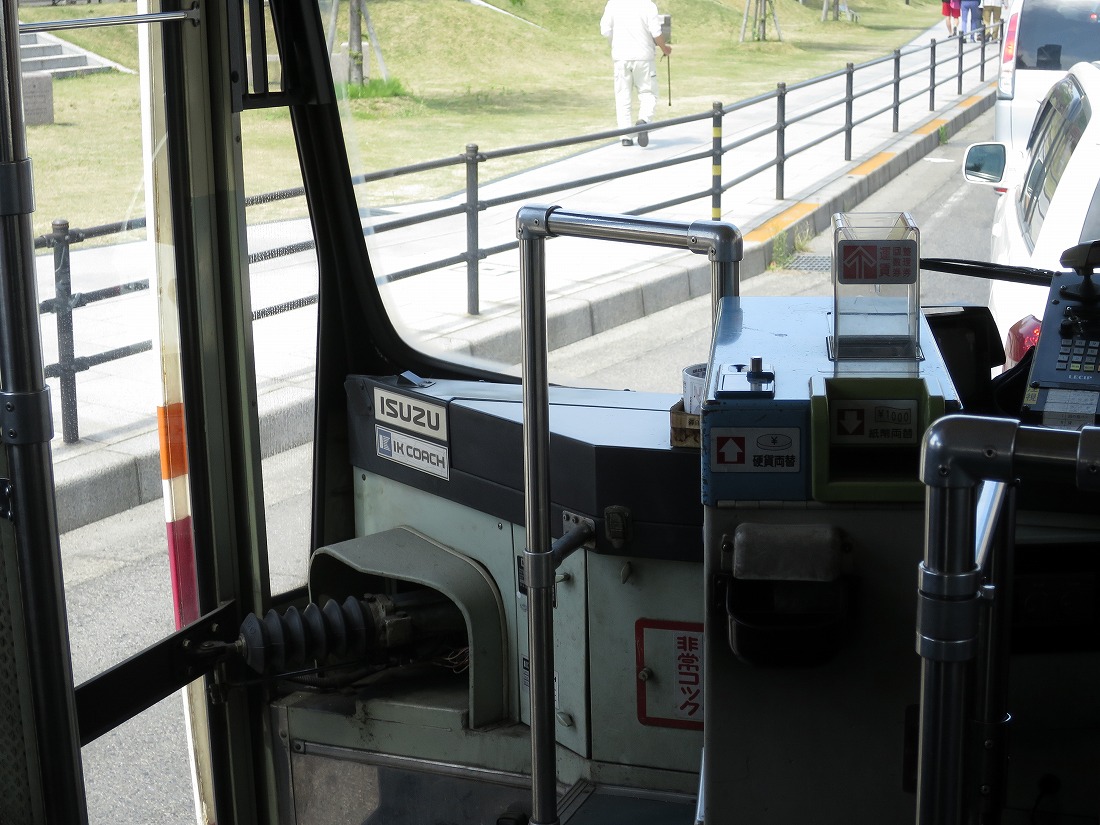 因島北インター入口で数名下車。後ろを向くと筆者ともう1人と淋しい車内になりました。