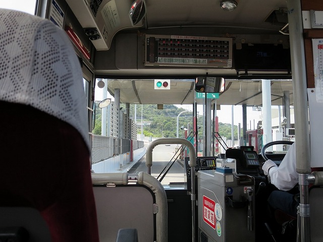 児島インターで高速走行は終了。下電バスも一般ゲートに入ります。