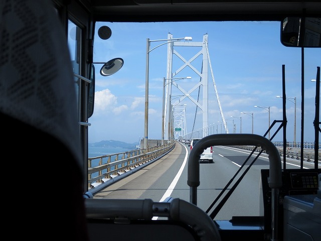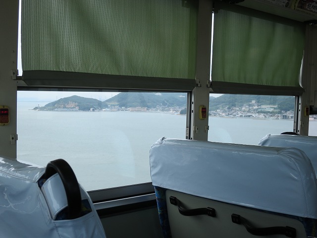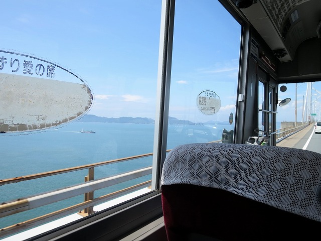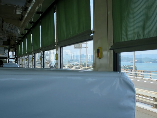 坂出駅から与島までは琴参バスのトップドアなレインボーに乗車。若者2名を乗せて出発。