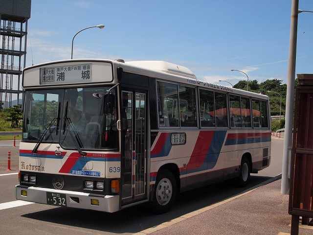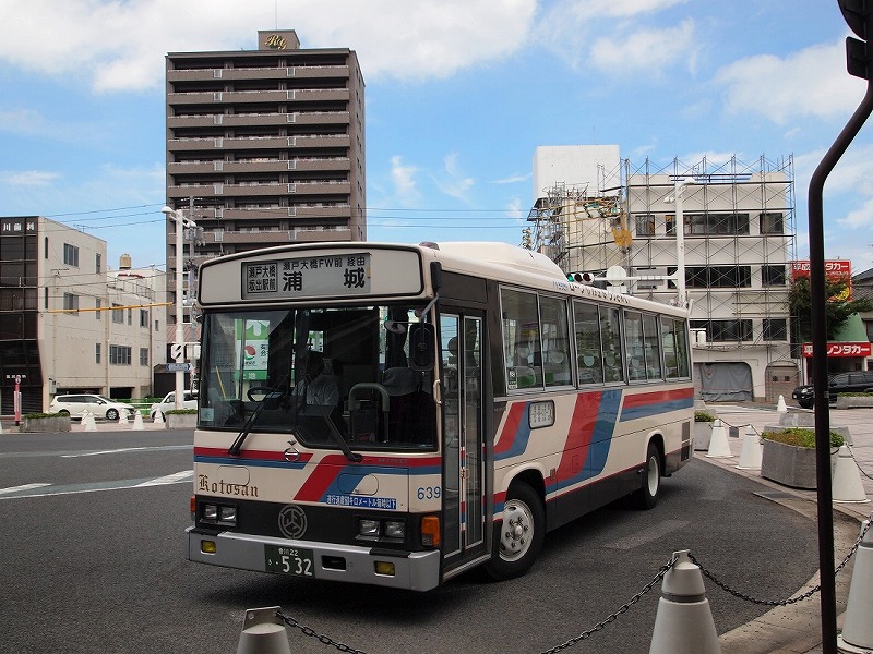 与島から児島駅からは下電バスに乗車。本務車が点検なのか予備の車両がやってきました。
