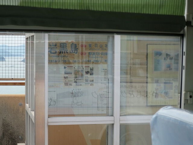 反対車線の岩黒島バス停。四国方面のみ島民用のインターチェンジ付きです。