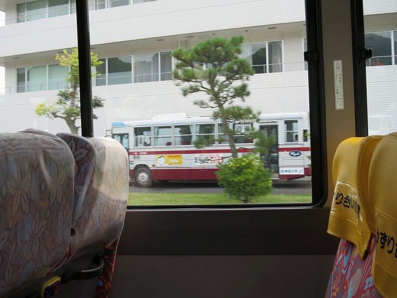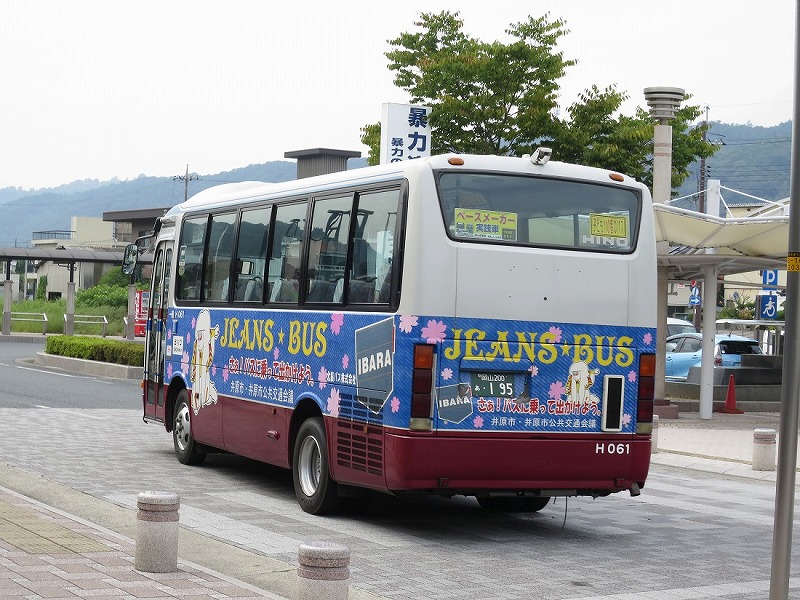 北振バスのH061号車なリエッセに乗車。ジーンズをPRするラッピングが施されています。北振バスは貸切で1度乗ったことがありますが、路線バスに乗車するのは初めてだったりします。