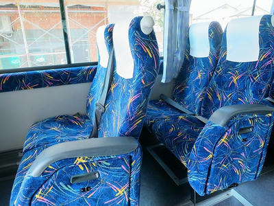 車内はこんなのしか撮影できませんでしたが、4列シートが並んでおり、後部にトイレの設置がある仕様となっています。
