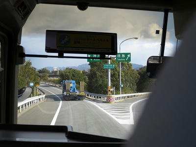 カネショウのトラックに抜かれる。淡路島走ってるとよく見かけますね。