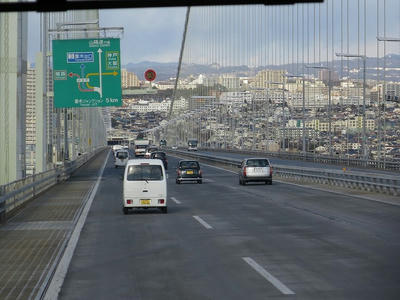 淡路海峡大橋を渡る。