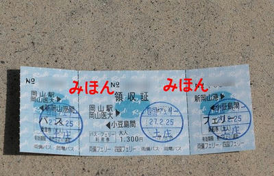 土庄港の窓口で「かもめバス切符」を購入。土庄港~岡山駅間まで大人1300円で移動することが可能なお得なチケットです。