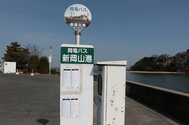無事に新岡山港に到着。フェリーは快適に移動することが出来ました。港直ぐに新岡山港バス停があります。