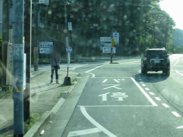 御立南口バス停。2か所で1名ずつ降車があり筆者のみに。