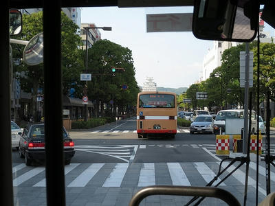 広い道を走り。テクノ中央で1名下車。筆者も途中の芝生広場バス停で下車しました。