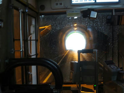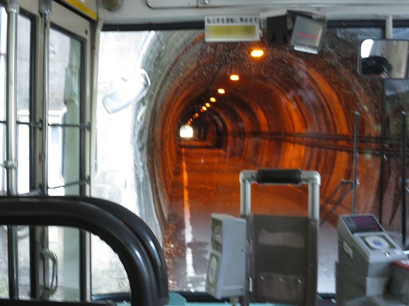 狭いトンネルはゆっくりと慎重に進みます。