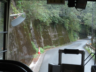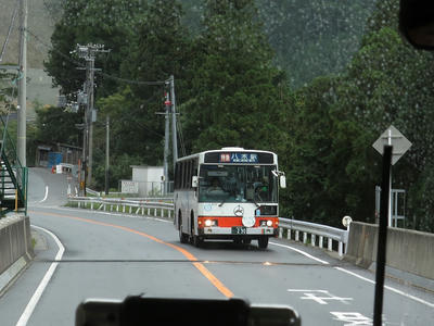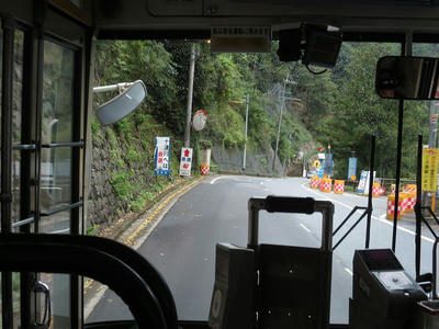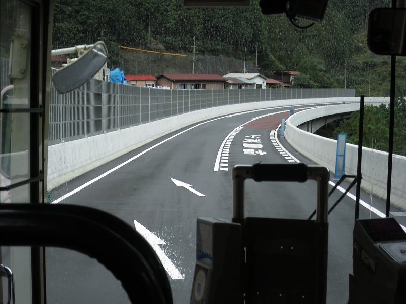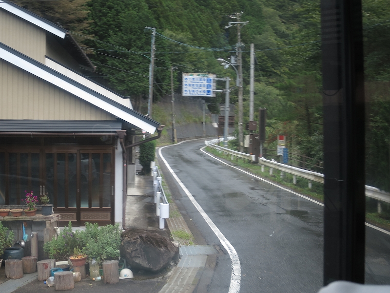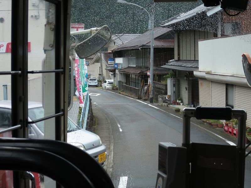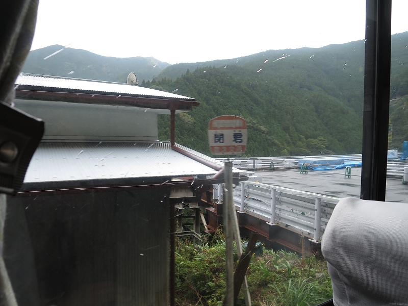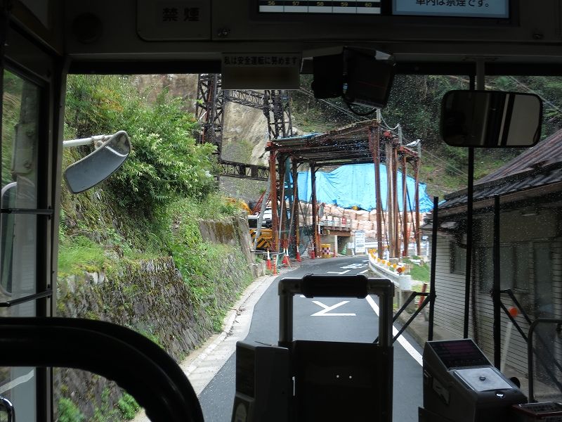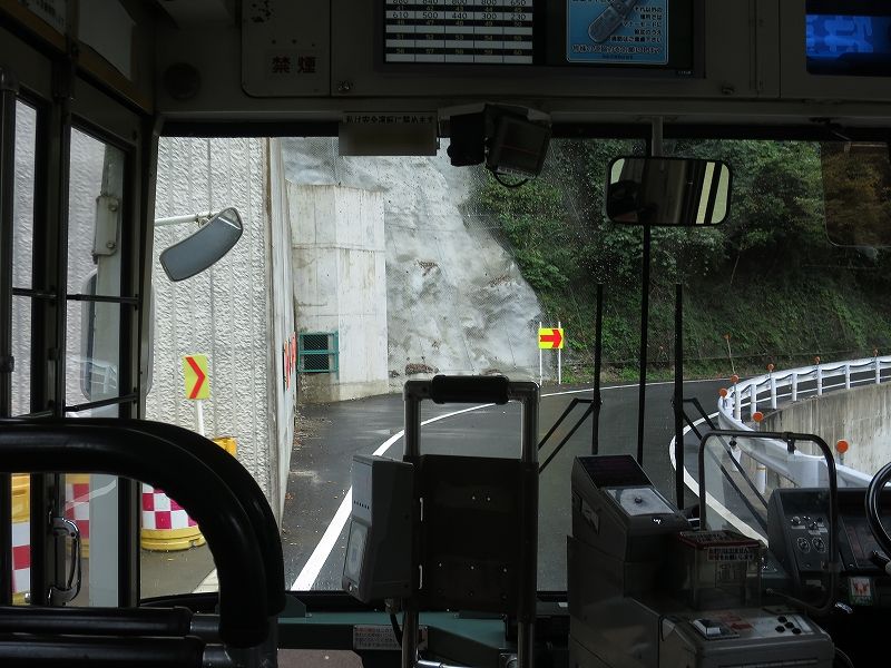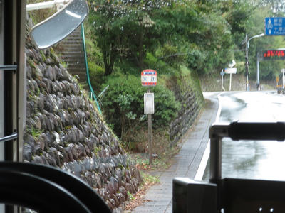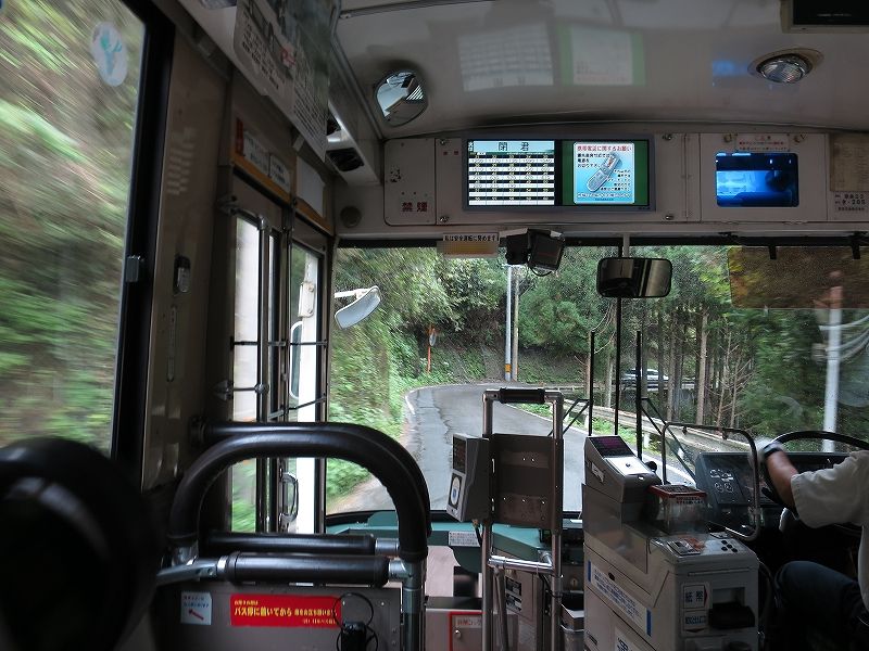 道路の関係で閉君バス停は広いところで一旦バックして元来た道へと戻る感じになってます。