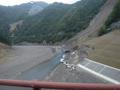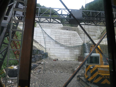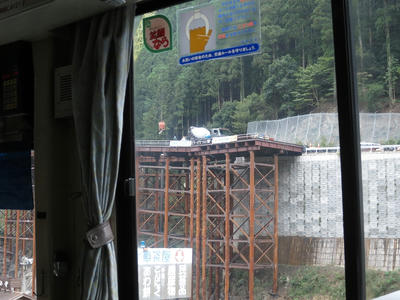 狭い区間で砂防ダムの工事が行われていた。