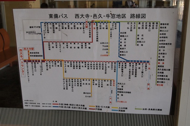 西大寺バスセンターに貼られていた東備バスの路線図です。