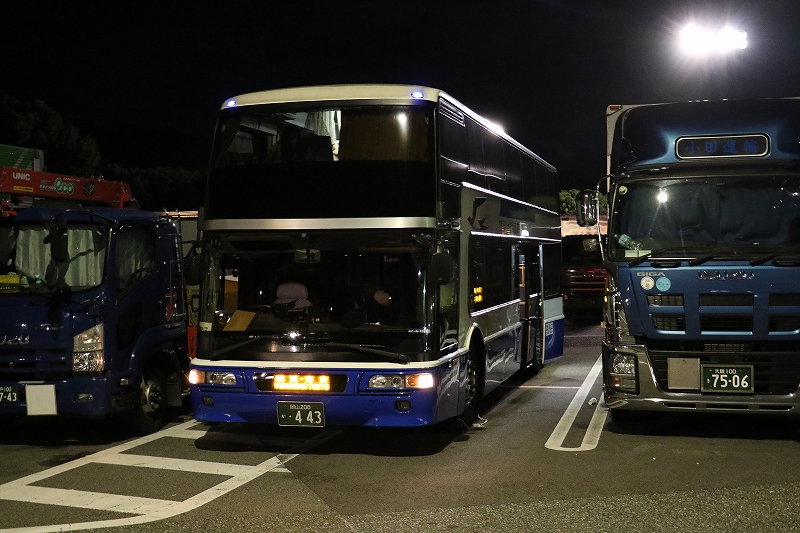 少ししてバスは消灯Zzzz 夜行バスは乗る機会が無いので途中交代の減速で目が覚める。1時過ぎに甲南、5時ごろに足柄で止まっているのを確認。
