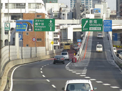 新宿出口で高速を降ります。