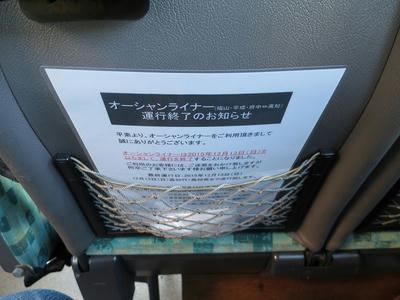 座席ポケットには運行終了のお知らせの紙が。